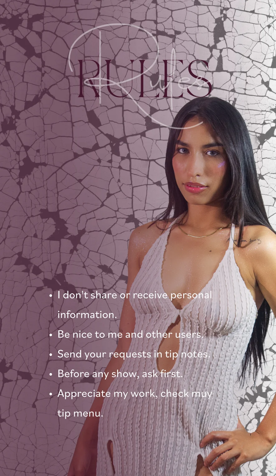 Zezadu, Ahegao, Plácání po zadku, Erotický tanec, Velbloudí palec, Prstění, Zadkem k puse, Dildo nebo vibrátor, Footfetish, Ponižování, Olejová show, Podpatky, Twerk, Striptýz, Pokyny k masturbaci, Masturbace, Masáž, Orgasmus, Na koníčka